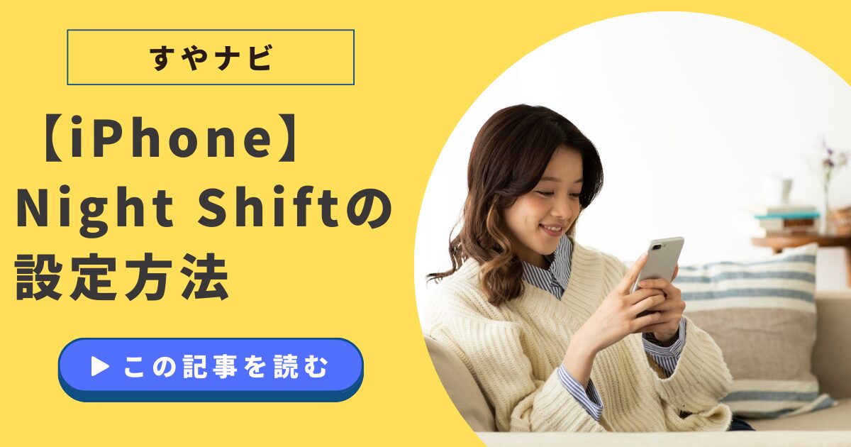 Night Shiftは、夜の時間帯に画面を暖色寄りにして、まぶしさをやわらげるための設定です。